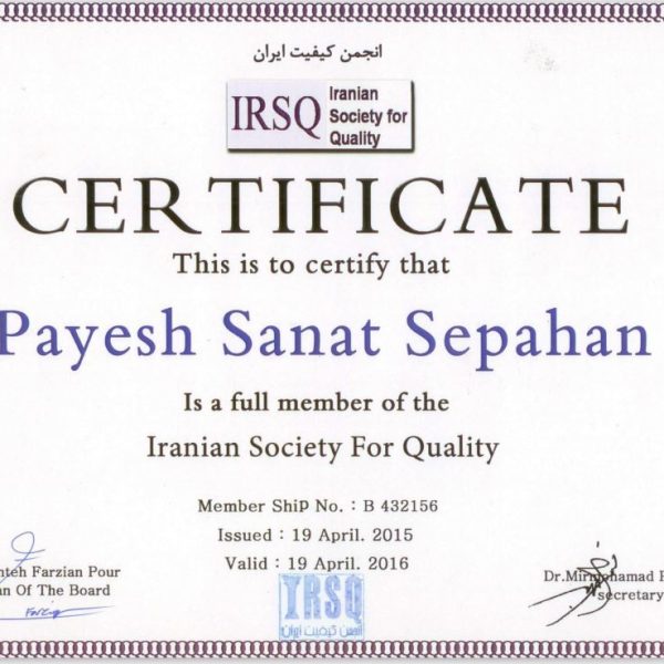 گواهینامه های دریافتی از شرکت سهامی فارس
