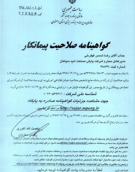 گواهی حسن انجام کار از شرکت مدیریت تولید برق نیروگاههای استان سیستان و بلوچستانModirpayeshدسامبر 15, 2023دریافت گواهی ... ادامه مطلب